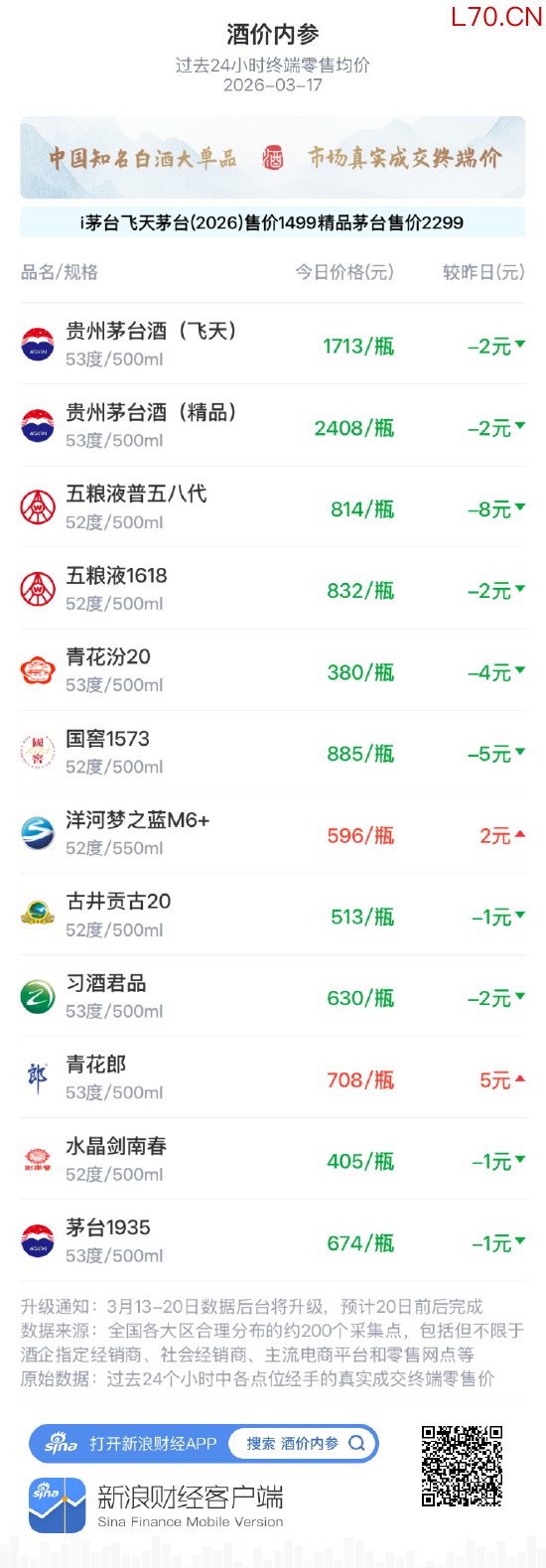 新浪财经“酒价内参”重磅上线 知名白酒真实市场价尽在掌握股票行情软件
