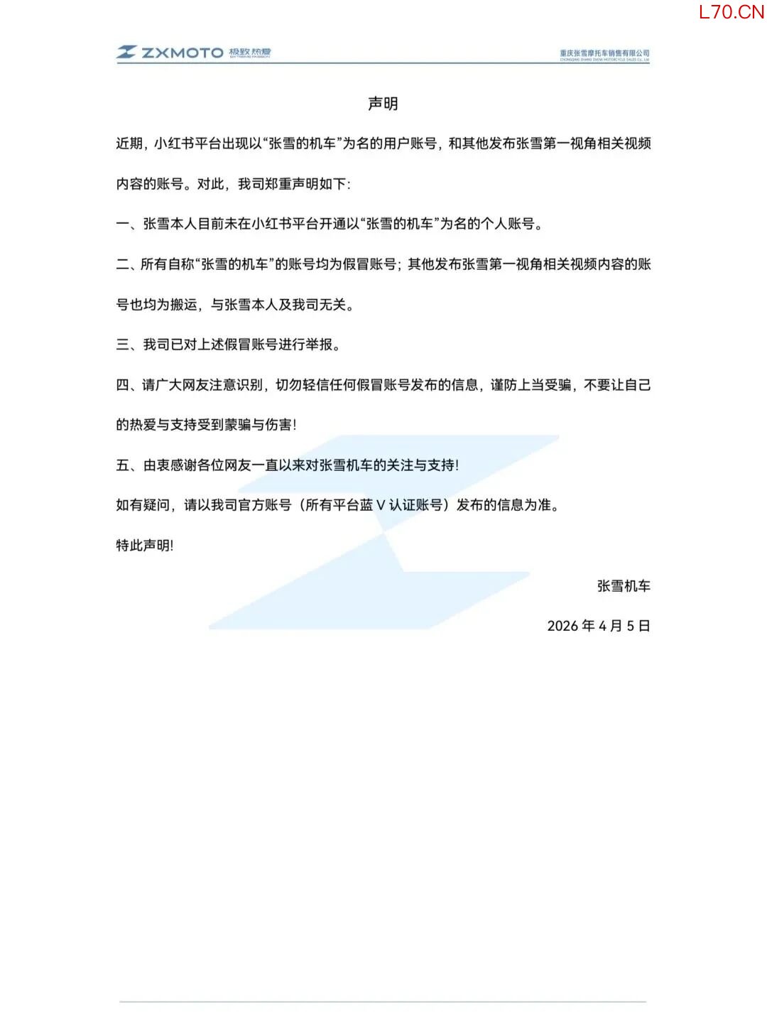 张雪机车打假冒充账号