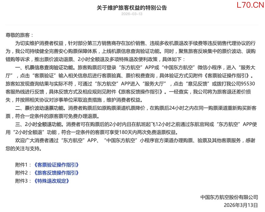 日前,中国国际航空、中国东方航空、中国南方航空发布维护旅客权益公告,推出票价波动免费退票政策。